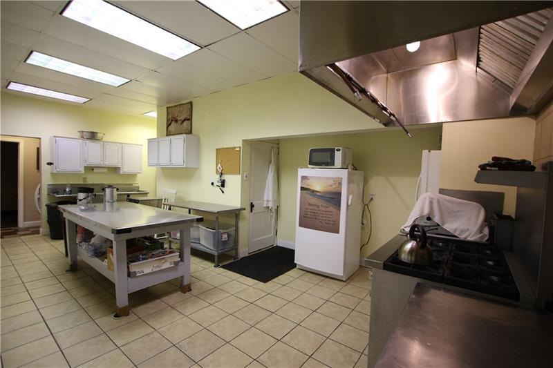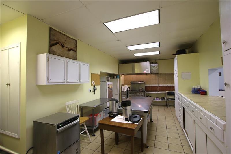 Solid Building currently used as a Church offering a 38x18 Dining Hall, Fully Equipped 25x15 Kitchen including Commercial Stainless-Steel Appliances = Prep Tables, 3 bowl Commercial Dishwasher/Sanitizer & Garbage Disposal, 6 Burner Gas Stove w/ Hood & Sprinkler System, Fryer, Freezer, Ceramic Tile Service Counter w/ Service Window to Dining area, Refrigerator & Plenty of Built-in Cabinets and Drawers! Massive 29x38 Church area having Hardwood Floors under Carpeting. Additional 13x8, 10x10, 9x12, 10x15, 12x9 & 7x6 Rooms on opposite side of worship area plus 3 restrooms! Newer Wiring, Plaster, Pex Plumbing, Roof, Stucco on Exterior, Carpeting, Kitchen, Baths & more all done in past 10-12 years. Gutted and redone! Many possibilities for use ~ Daycare, Offices, Rehab, Catering, Restaurant, Gym, possible bar or club (would need proper license), Retail, Shopping, Warehouse or whatever you may desire! Excellent Condition! Church Pews, Tables & Chairs and some other items may be negotiable